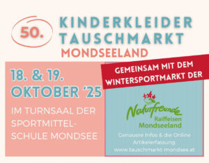 im Turnsaal der SMS Mondsee Kommendes Wochenende ist es endlich soweit – der 50. Kinderkleidertauschmarkt findet statt und die Naturfreunde sind mit dem Wintersportmarkt dabei !!! Hier findet ihr alles...